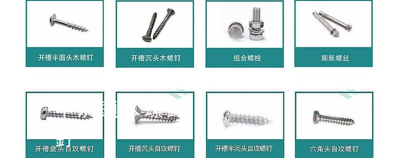 木螺釘有十字槽沉頭、十字槽半沉頭、十字槽圓頭、開槽(一字槽)沉頭、開槽半沉頭、開槽圓頭、六角頭等幾種,公稱直徑有1.6、2、2.5、3、3.5、4、5、6、7、8、10等系列,長度有6、8、10、12、16、20、25、3