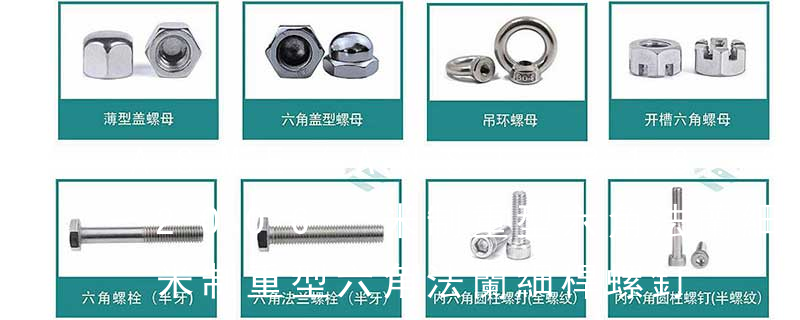 六角頭螺釘Hex cap screw與大六角螺栓Hex bolt 顧名思義為頭部為六角型的外螺紋扣件,設計為使用扳手轉動。 依照ASME B18.2.1標準,六角頭螺釘(Hex cap screw)較一般的大六角螺栓(Hex bolt)的頭高和桿長公差小,因此AS 1、不銹鋼國標螺母的標準尺寸為M1.6-M64。不銹鋼國標螺母包括:六角螺母(GB6170/DIN934)、薄螺母(GB6172/DIN439)、重型螺母(公制、美制)、尼龍鎖緊螺母(DIN985-DIN982厚型)、全金屬鎖緊螺母(DIN980M),蓋型螺母