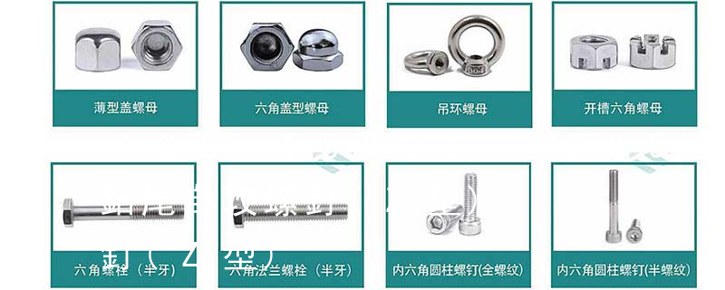 螺栓有:1、方頭螺栓,2、半圓頭方頸螺栓,3、十字槽盤頭螺釘,4、內六角沉頭螺釘,5、方螺母C級,6、蝶形螺母,7、六角頭螺栓,8、十字槽盤頭自攻螺釘。大小有M18、M6、M8、M16、M10、M12、M14、M20等型號。通常用 GB/T 819.1-2000 十字槽沉頭螺釘 第1部分:鋼4.8級 本標準規定了螺紋規格為M1.6~M10、性能等級為4.8級、H型和Z型十字槽、產品等級為A級的十字槽沉頭螺釘。如需其他技術要求,應從現行標準(如GB/T 196、GB/T