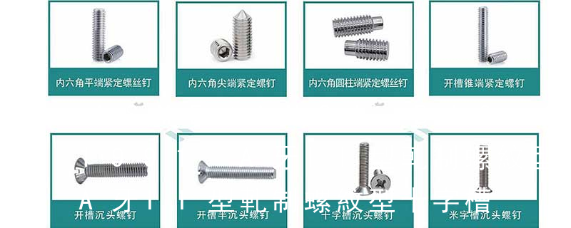種類1)開槽普通螺釘。多用于較小零件的連接。它有盤頭螺釘、圓柱頭螺釘、半沉頭螺釘和沉頭螺釘。盤頭螺釘和圓柱頭螺釘?shù)尼旑^強(qiáng)度較高,瑁在普通的部件連接上;半沉頭螺釘?shù)念^部呈弧形,安裝后它的頂端略外露,且美觀光滑, 舉例:螺釘規(guī)格名稱描述為“4-0.7x70PM±牙長(zhǎng)35”,其含義是“4”為螺釘螺紋公稱直徑,“0.7”為牙 距,70”為螺釘公稱長(zhǎng)度值,“P”表示其頭型為盤頭,“M” 表示其牙型/尾型為機(jī)絲牙類,“±” 表示其槽型為 “±槽”也可用“